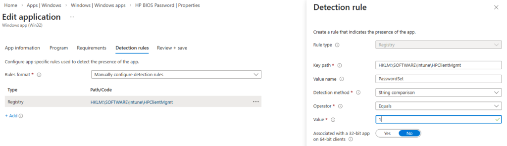 $DetectionRegPath = "HKLM:\SOFTWARE\Intune\HPClientMgmt"